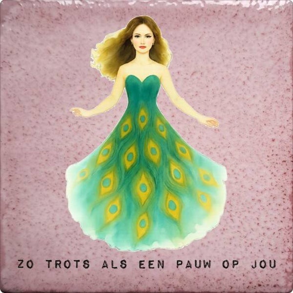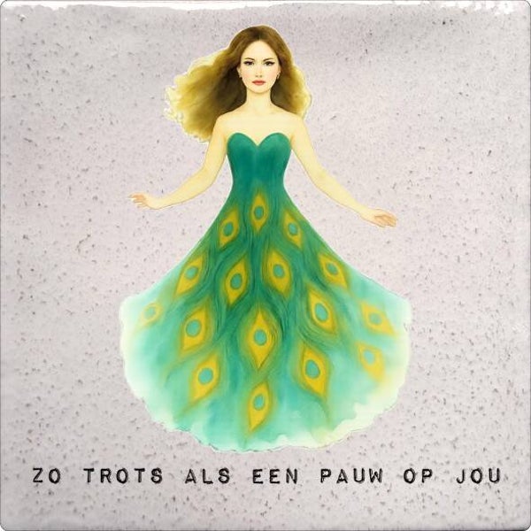 Tegeltje "Zo trots als een pauw op jou" (dame)